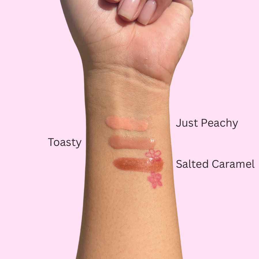 Our vegan, cruelty-free lip gloss is crafted to deliver a smooth, glassy shine while deeply hydrating and protecting your lips. Lightweight and non-sticky, it glides on effortlessly—leaving your lips soft, supple, and beautifully enhanced. Bubblegum is a soft pink tint, Vanilla flavored gloss.